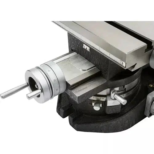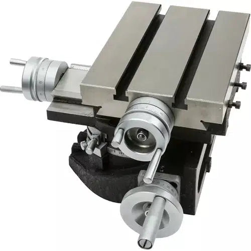Features 4" of longitudinal and transverse travel with 0.001" increments and 0.1" travel per handwheel revolution, a 7" x 9" table, 7/16" T-slots, 360° rotation with 2-minute increments, and a 90:1 handwheel ratio. This is one handy rotary table! Includes 3 hold down clamps, weight is 64 lb.