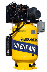 • EMAX Industrial Plus Whisper Series 15 HP 3 PH 120 Gallon Vertical Air Compressor with Air Silencer - Package Includes Dryer