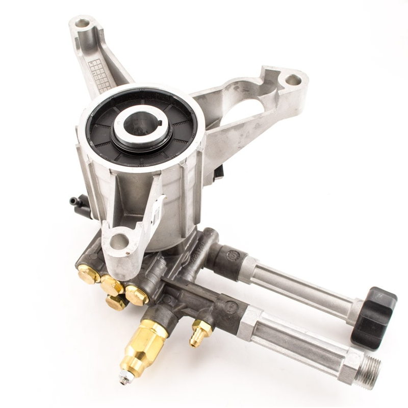 The Annovi Reverberi SRMW24G28-EZ-SX triplex residential plunger pump for vertical gas engine driven pressure washers flows 2.2 gallons per minute at 2,800 PSI and 3,400 RPM. This pump mounts directly on to the engine shaft by using a keyed hollow shaft connection system. The mounting flange provides a convenient connection to most 7/8” diameter shaft vertical gas engines in 4 - 7 HP (reference the cc to HP chart) and fits most OEM carts. This pump includes a built-in pressure control valve, downstream chemical injection system, EZ start valve and thermal relief valve. The seal system uses a high and low pressure seal.