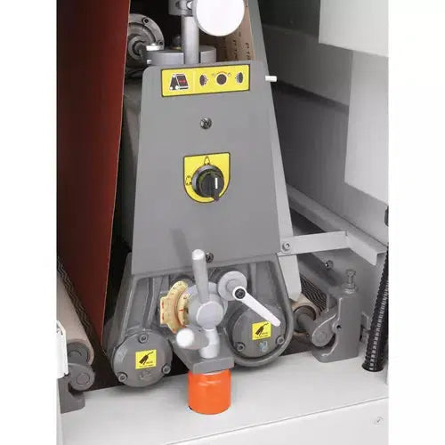 The G0582 includes additional features such as a digital readout, powered table elevation, four screw jacks for table support, variable speed, disc brake stopping system and dust proof photo electric eye/pneumatic control for belt oscillation.