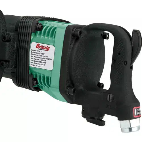This 1" Drive Air Impact Wrench provides a max torque of 1800 lb-ft and has 90-115 PSI air pressure. Free speed is 3500 RPM and has three speeds forward as well as three speeds reverse. Bolt capacity is 1-5/8" and minimum air hose is 1/2" ID. 9" extended anvil and 1" square drive, includes the 1/2" hose coupler.