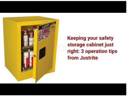 For storage of larger quantities of flammable solvents, the heavy-duty Drum Safety Cabinet is available in many styles and sizes. Built to the same high standards as the smaller Classic Safety Cabinets, a reinforced liquid-tight sump contains spills. An array of drum accessories and equipment is available to ensure safety and convenience when storing and handling drums of hazardous materials.