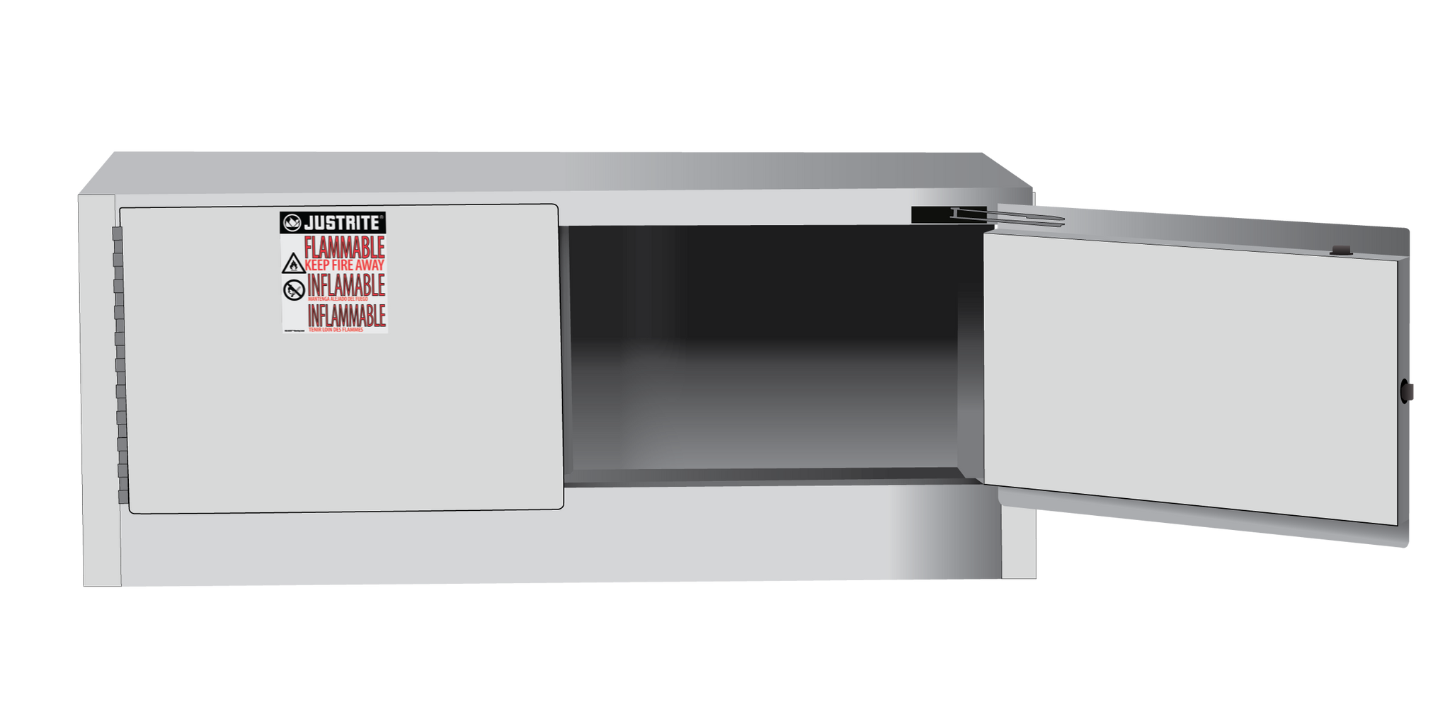Create a safe storage for flammables without taking up valuable floor space. Designed to mount on top of 30- and 45-gallon (114- and 170-L), manual or self-closing Sure-Grip® EX cabinets. They can also be used independently as a benchtop cabinet or stacked to provide additional storage. Turn it into a wall-mount cabinet with by ordering a wall hanger assembly 25950. These cabinets have all the great features and benefits of our classic cabinets as outlined below.