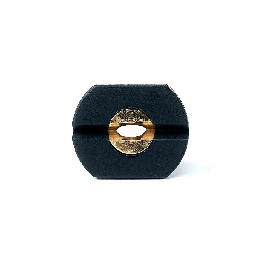 This Soap Nozzle has a black pressed head over a hardened brass body.