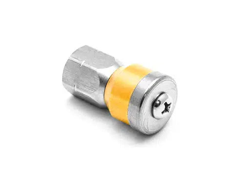 MTM Hydro's 1/8" Rotating Sewer Nozzles are ready to get down and dirty with a meticulously designed Stainless body and spinning brass collar. As pressurized water passes through the body and exits through the three rear facing jets a fluid bearing is created which allows the collar to spin freely. As the collar spins, this little nozzle plows through pipes and turn roots into shavings for the Pros and DIY's. Once you begin feeding the nozzle and line down the pipe, avoid starting and stopping as this will allow grit into the fluid bearing and cause the collar to lock up. Adhere to recommended specs and do not exceed 3,000 PSI. All MTM Hydro sewer nozzles are laser etched along the neck with size of the nozzle. For reference: 55 translates to a size 5.5 orifice.