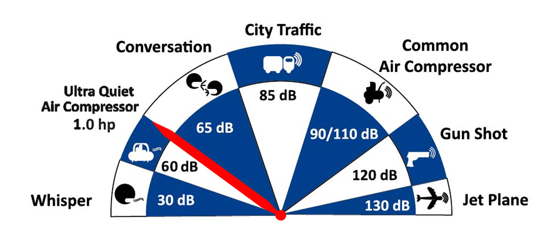 The CALIFORNIA AIR TOOLS 2010ALFC Ultra Quiet air compressor is designed to be one of the quietest air compressors in the industry having only 60 decibels of sound.