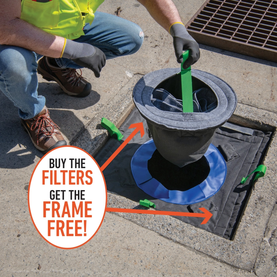 Customize your storm drain insert with our easy filter changeout system to reduce stormwater pollution. Just choose a frame that fits your drain, then pick filters for the contaminants you need to remove.