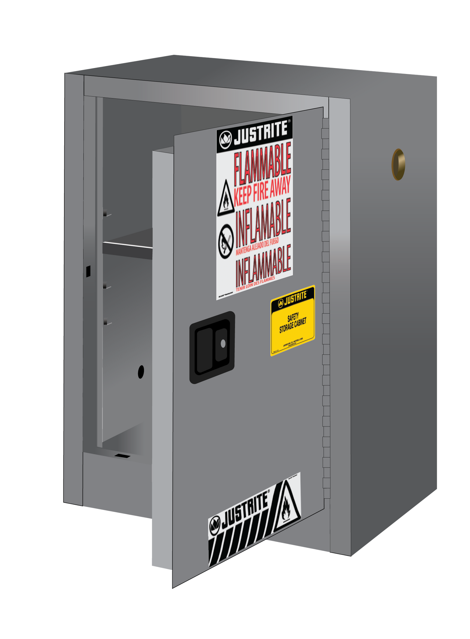 Ideal for the safe storage of solvents and flammable liquids on countertops