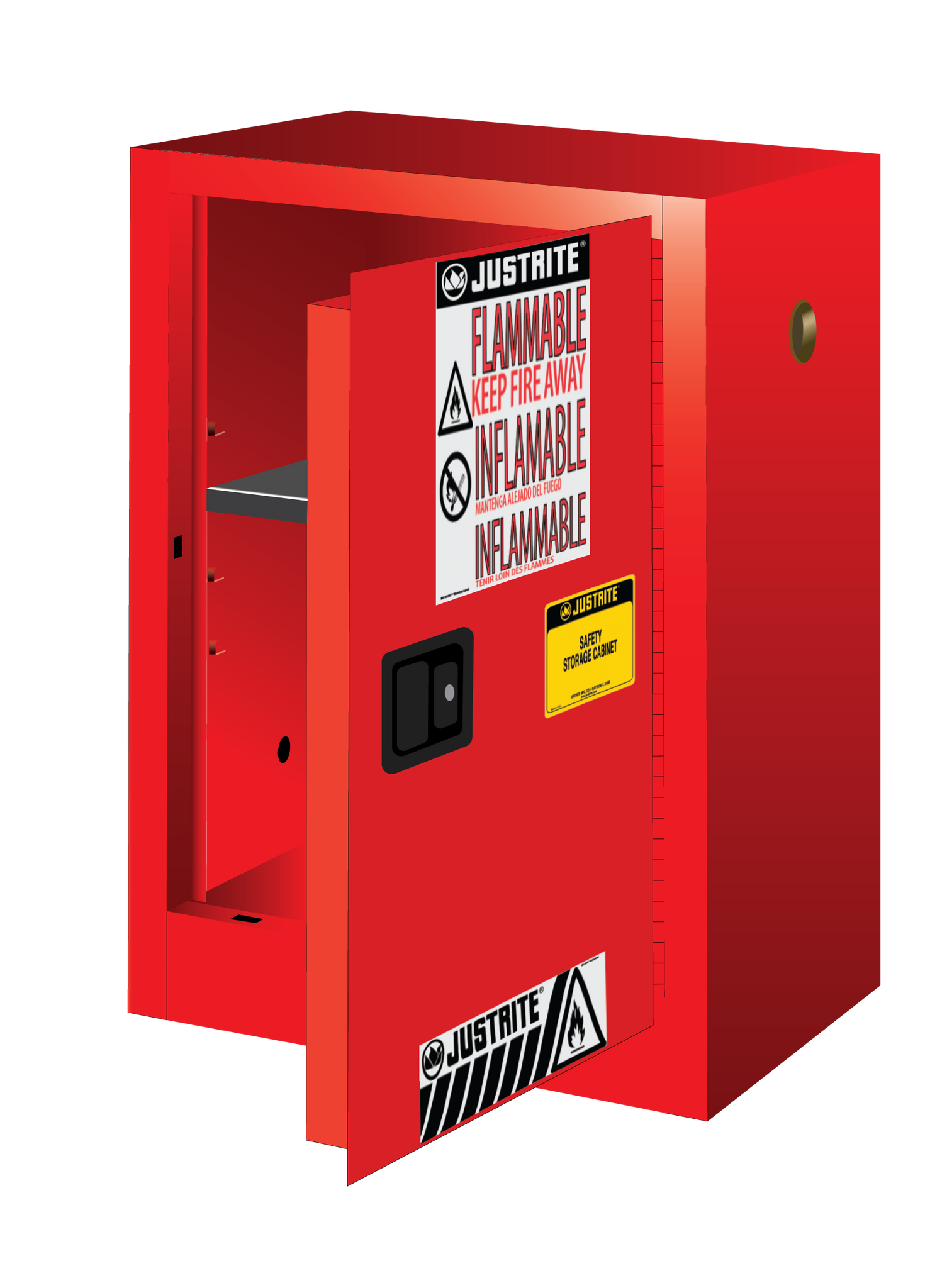 Justrite Sure-Grip® EX Compac Flammable Safety Cabinet, 12 Gal., 1 shelf, 1 m/c door, Red