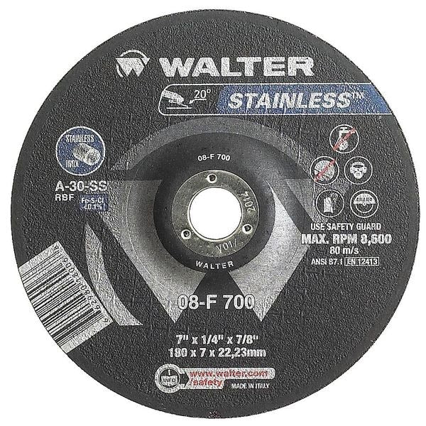 Walter Depressed Center Grinding Wheel, Type 27, 0.25 In Thick, Aluminum Oxide